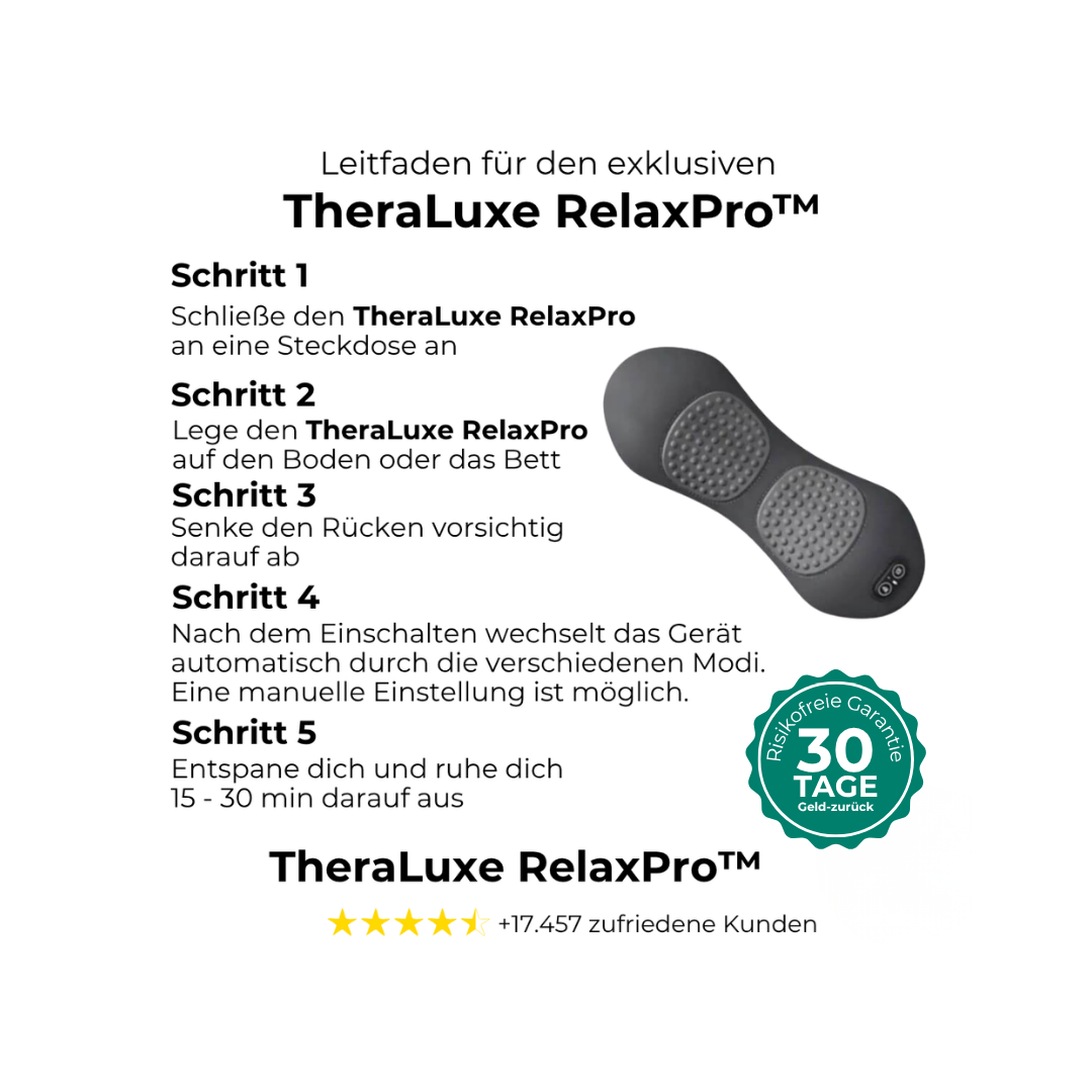 👉 Bestelle jetzt deinen TheraLuxe RelaxPro™ und starte die 30-Tage-Rückenfrei-Challenge.
